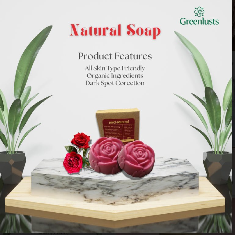 Our Organic Rose Glow Soap has excellent emollient qualities, moisturizing dry skin, and anti-inflammatory properties to help control redness and inflammation. Like all GreenLusts Essential Soaps. Organic Rose adds a delicious fragrance to your skin, and your bathroom, fragrance that lasts as long as the bar – as much as two months with everyday use.